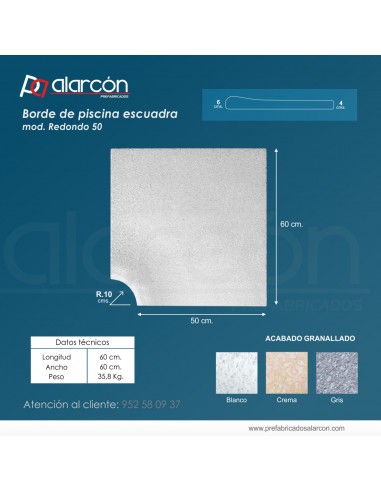 BORDE DE PISCINA CURVO RADIO INTERIOR. (modelo redondo 50)