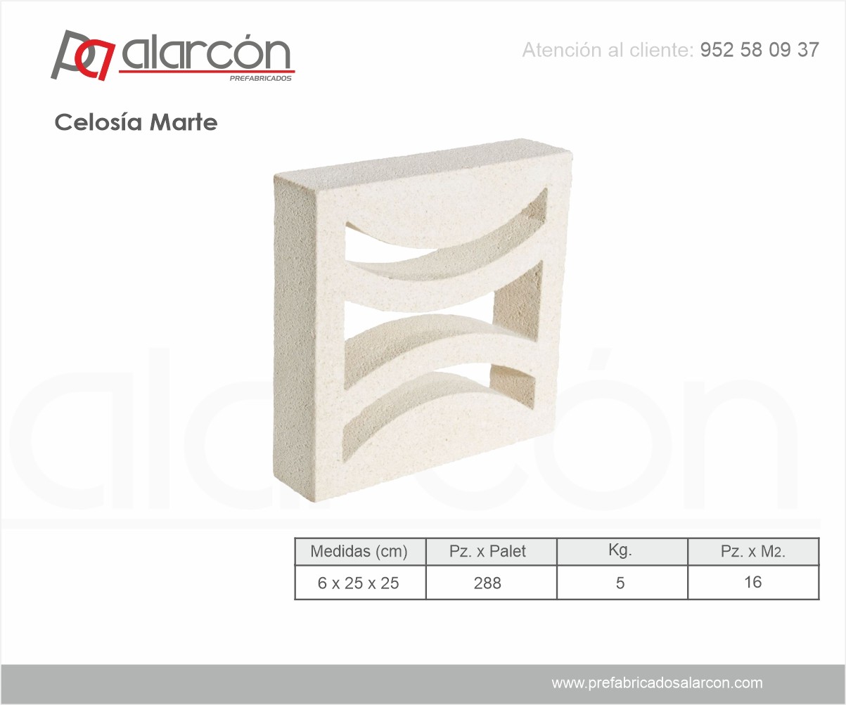 Las celosías prefabricadas son piezas fabricadas en hormigón prensado. Se fabrica en diferentes modelos y formatos.