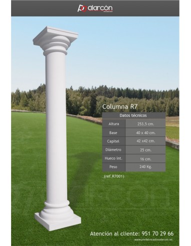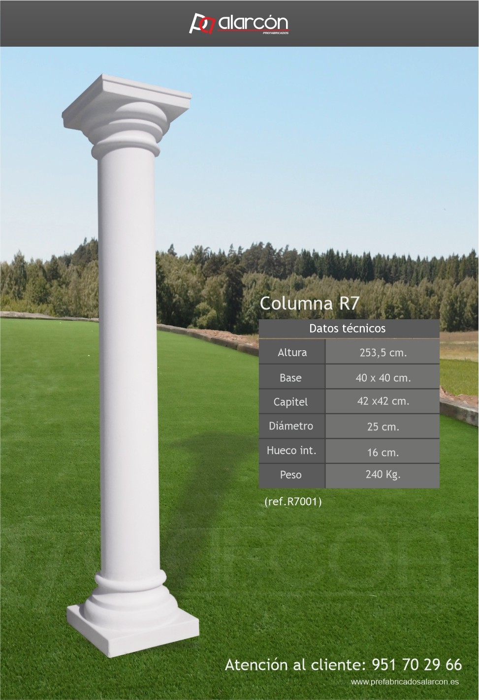 Columna fabricada en hormigón blanco, reforzada con varillas corrugadas galvanizadas incluye fibra de vidrio en el material y aditivos para el cemento.