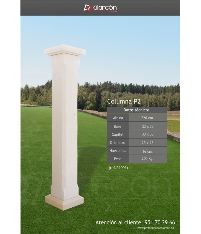 Columna fabricada en hormigón blanco, reforzada con varillas corrugadas galvanizadas incluye fibra de vidrio en el material y aditivos para el cemento.