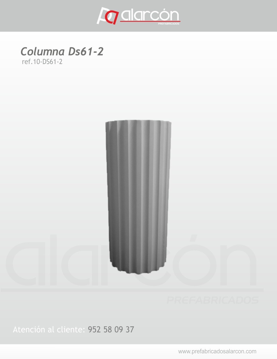 Columna fabricada en escayola de color blanco y acabado liso, para uso interior.