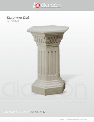 Columna fabricada en escayola de color blanco y acabado liso, para uso interior.