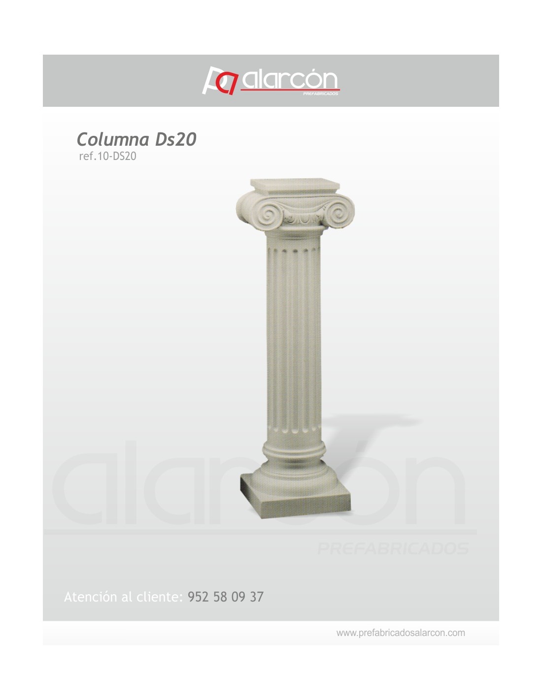 Columna fabricada en escayola de color blanco y acabado liso, para uso interior.