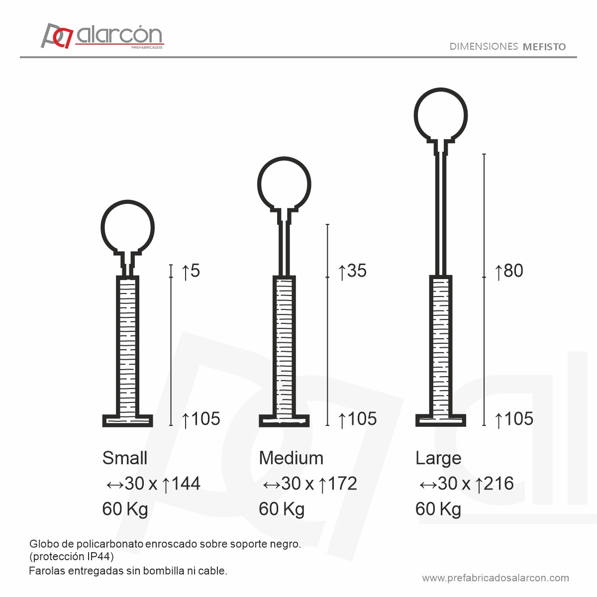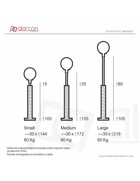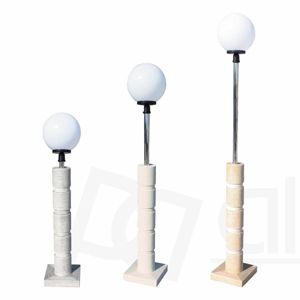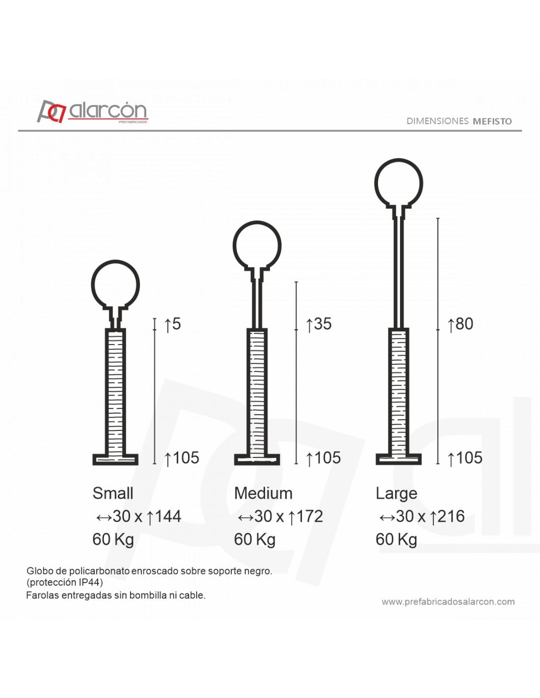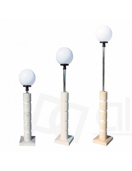 Farola fabricada en hormigón para crear una cuidada iluminación. Tubo de acero inoxidable y globo de policarbonato (protección ip44) enroscado sobre soporte negro. No incluye ni bombilla, ni cable.