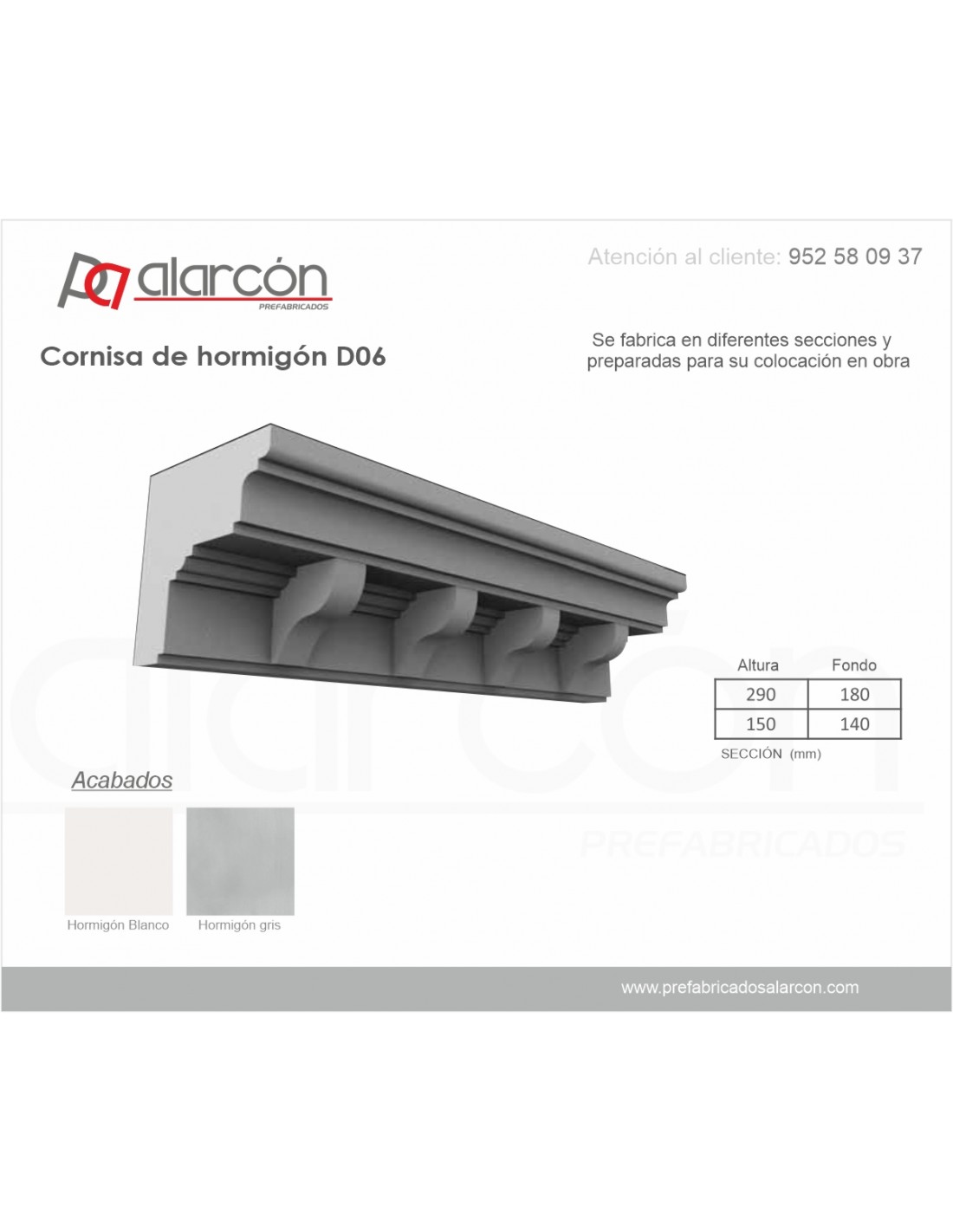 Las cornisas prefabricadas son piezas que solucionan la construcción de estos elementos decorativos dándole un toque de distinción. Se fabrica en diferentes modelos y secciones.