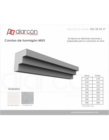 Las cornisas prefabricadas son piezas que solucionan la construcción de estos elementos decorativos dándole un toque de distinción. Se fabrica en diferentes modelos y secciones.