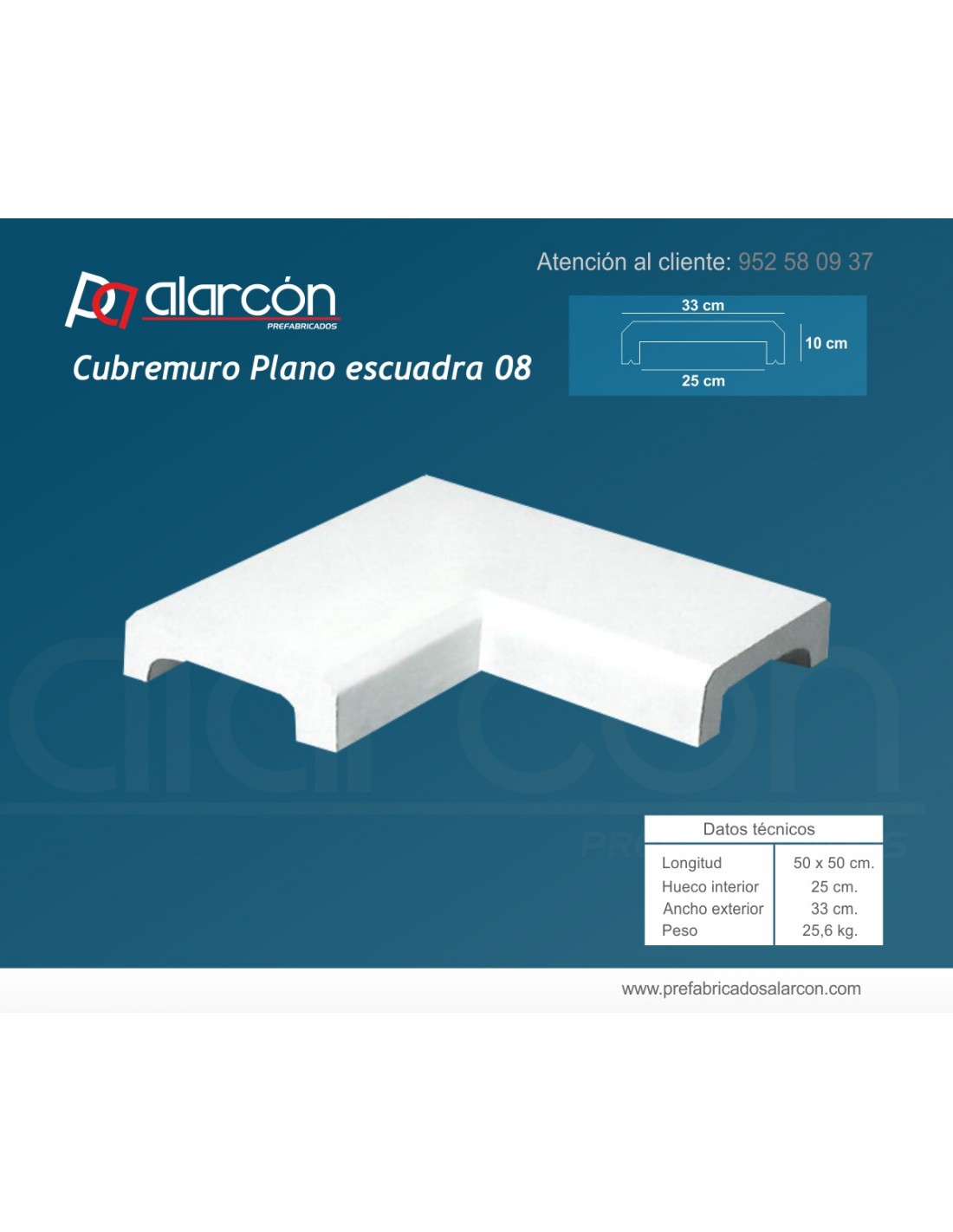 Cubremuros plano de hueco interior 13 cm. fabricado en hormigón, reforzado mediante fibra de vidrio en el material y aditivos para el cemento.