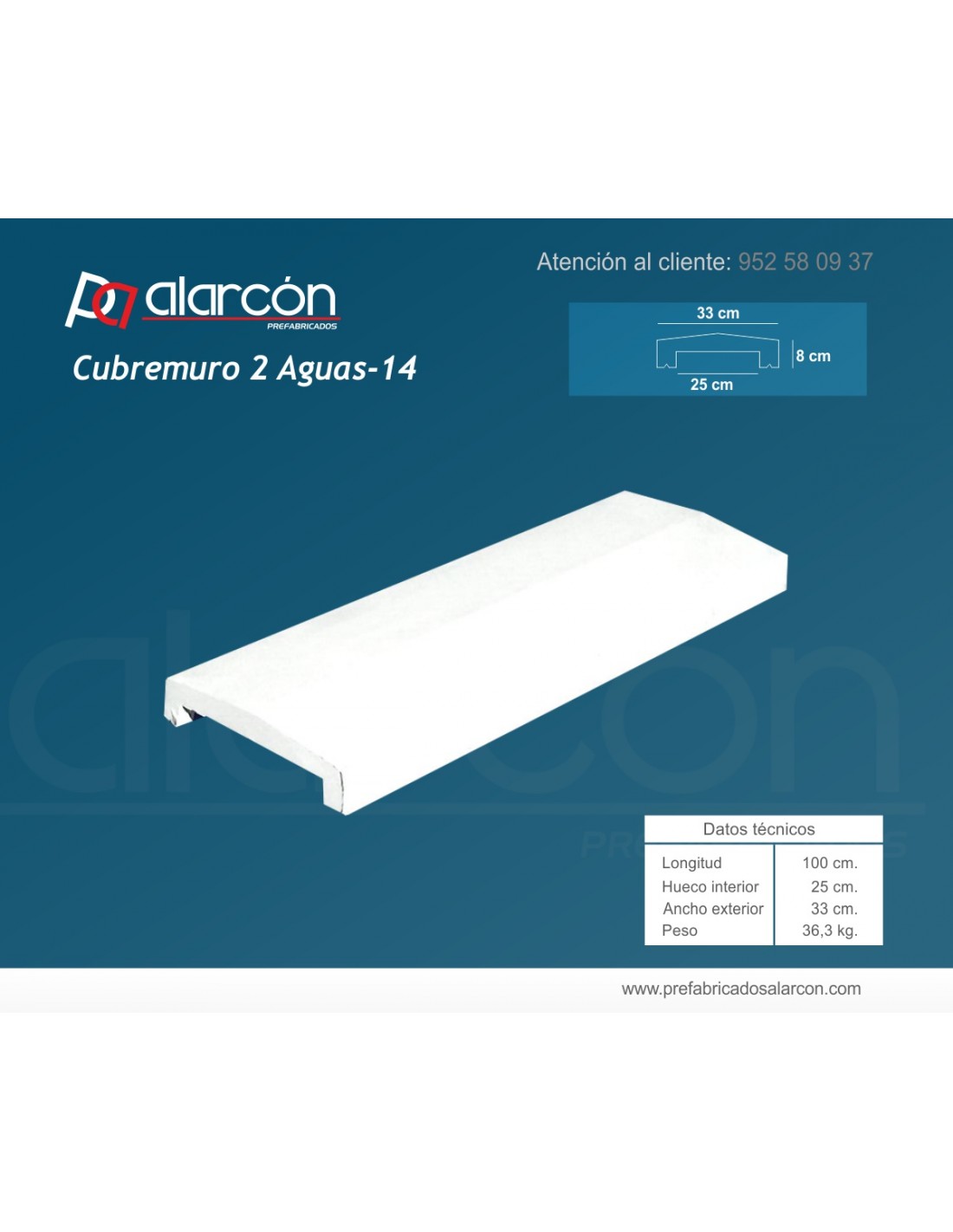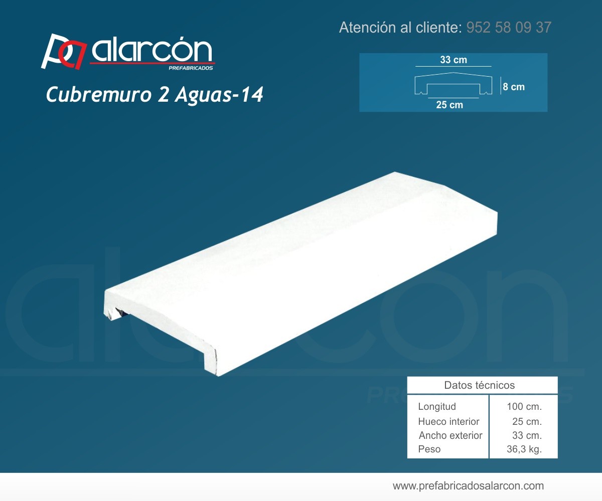 CUBREMUROS 2 AGUAS 14 HUECO INTERIOR 25 CM.