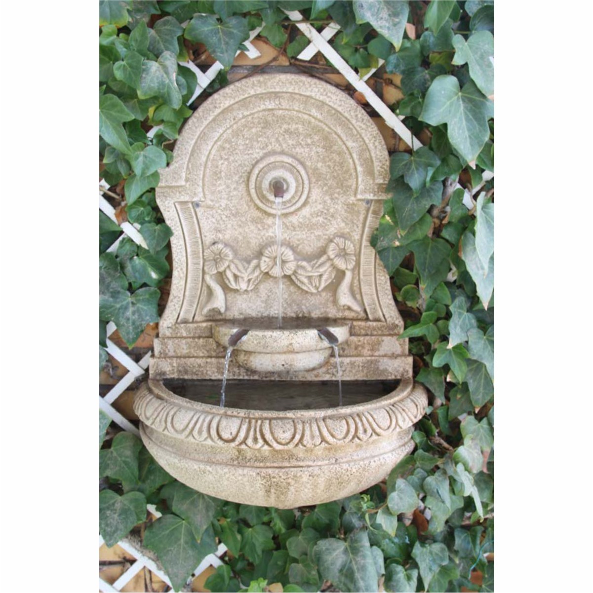 Fuente de pared fabricada en hormigón armado con acabado superficial natural.