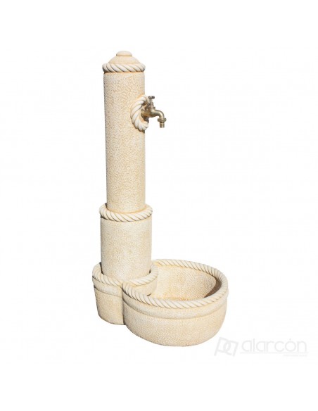 Fuente de pie fabricada en hormigón armado con acabado superficial natural, incluye grifo.