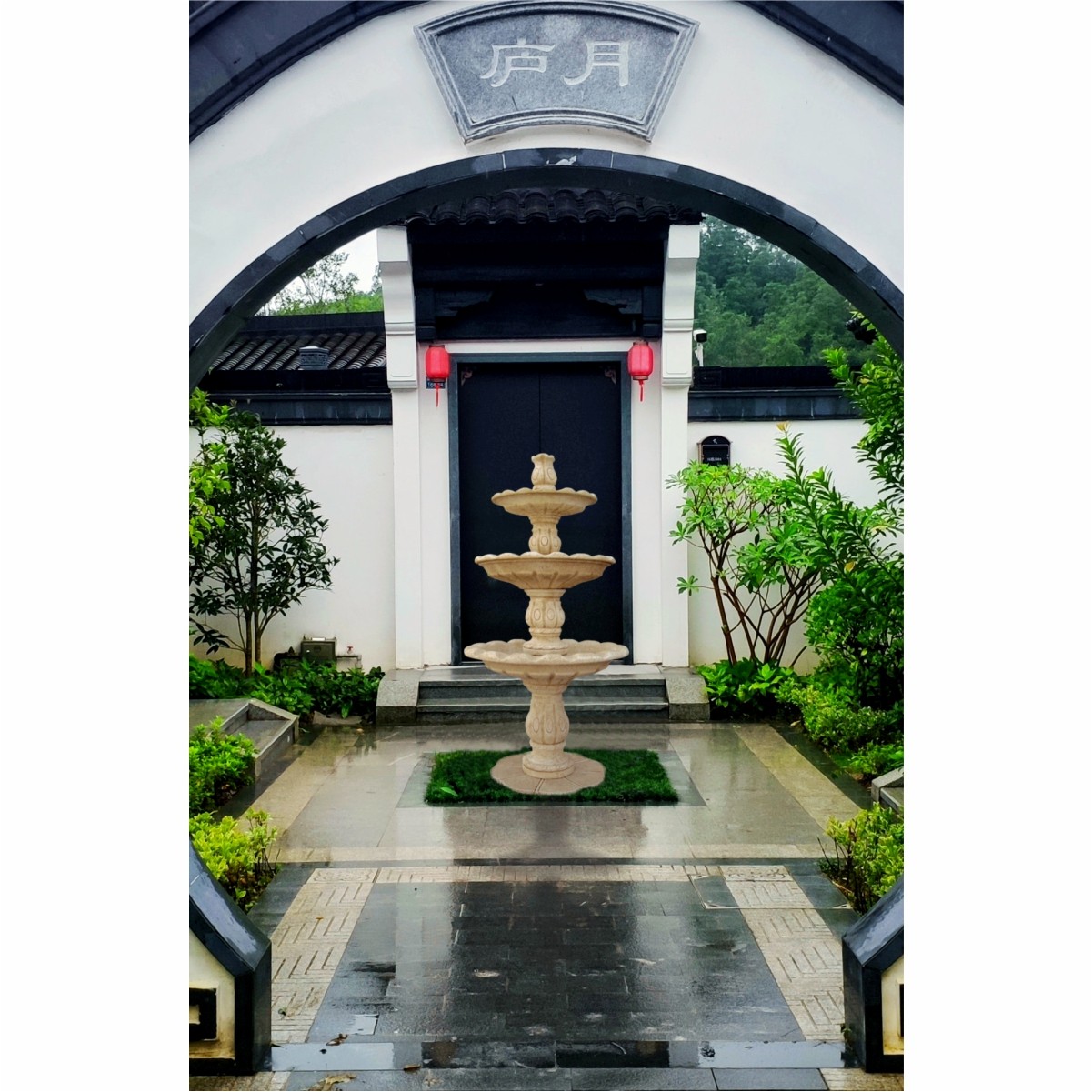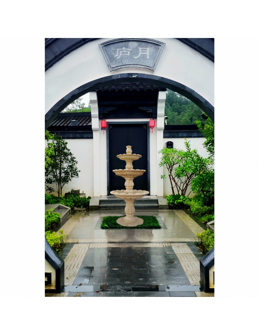 Fuente de hormigón armado con acabado natural, especial para exteriores.