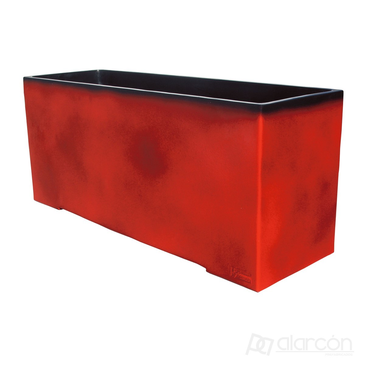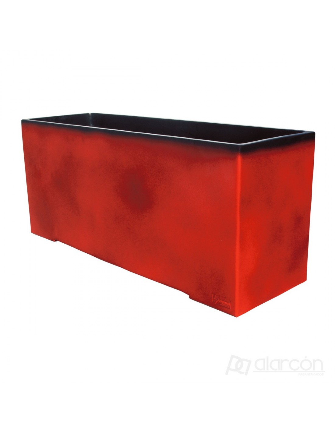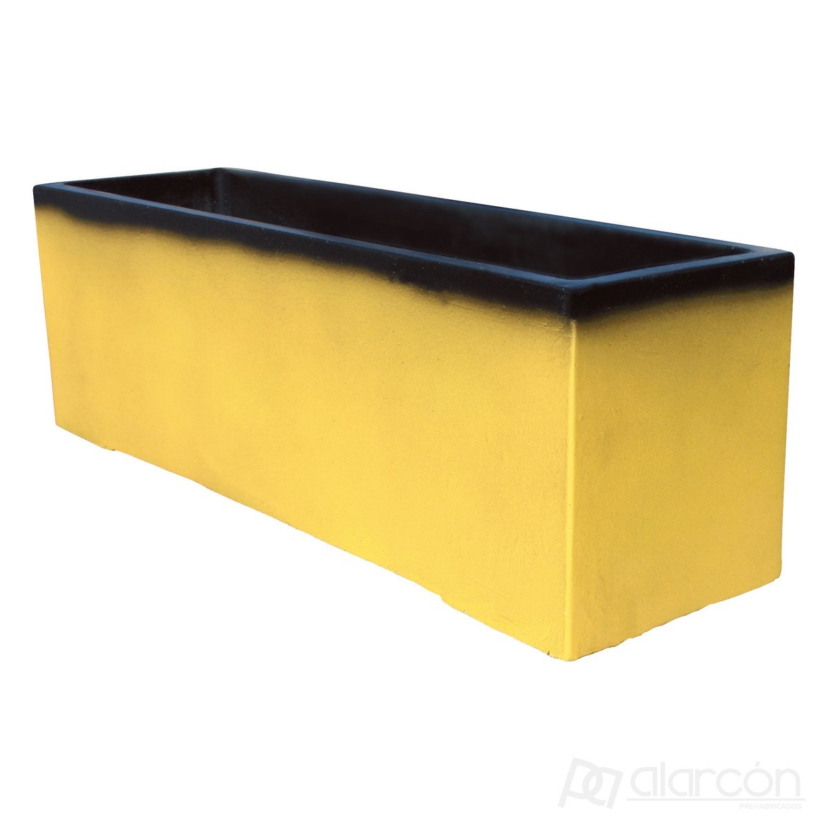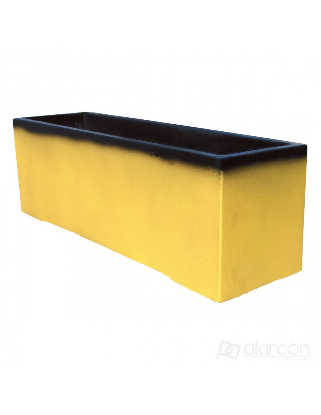 Jardinera fabricada en hormigón de estilo moderno con el filo superior en color negro que le aporta creatividad y colorido.