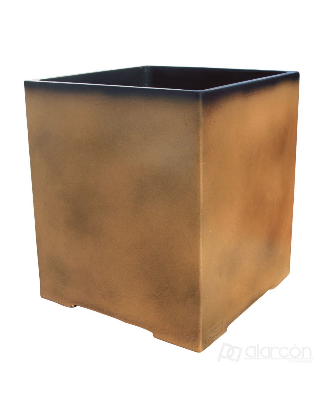 Jardinera fabricada en hormigón de estilo moderno con el filo superior en color negro que le aporta creatividad y colorido, ideal para la decoración de su jardín y preparadas para el su uso en el exterior.