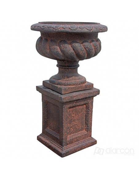 Jardinera fabricada en hormigón de estilo clásico, nunca pasan de moda y quedan ideales en cualquier jardín.