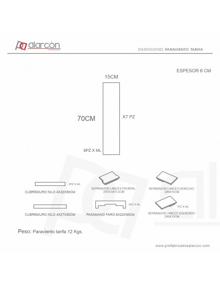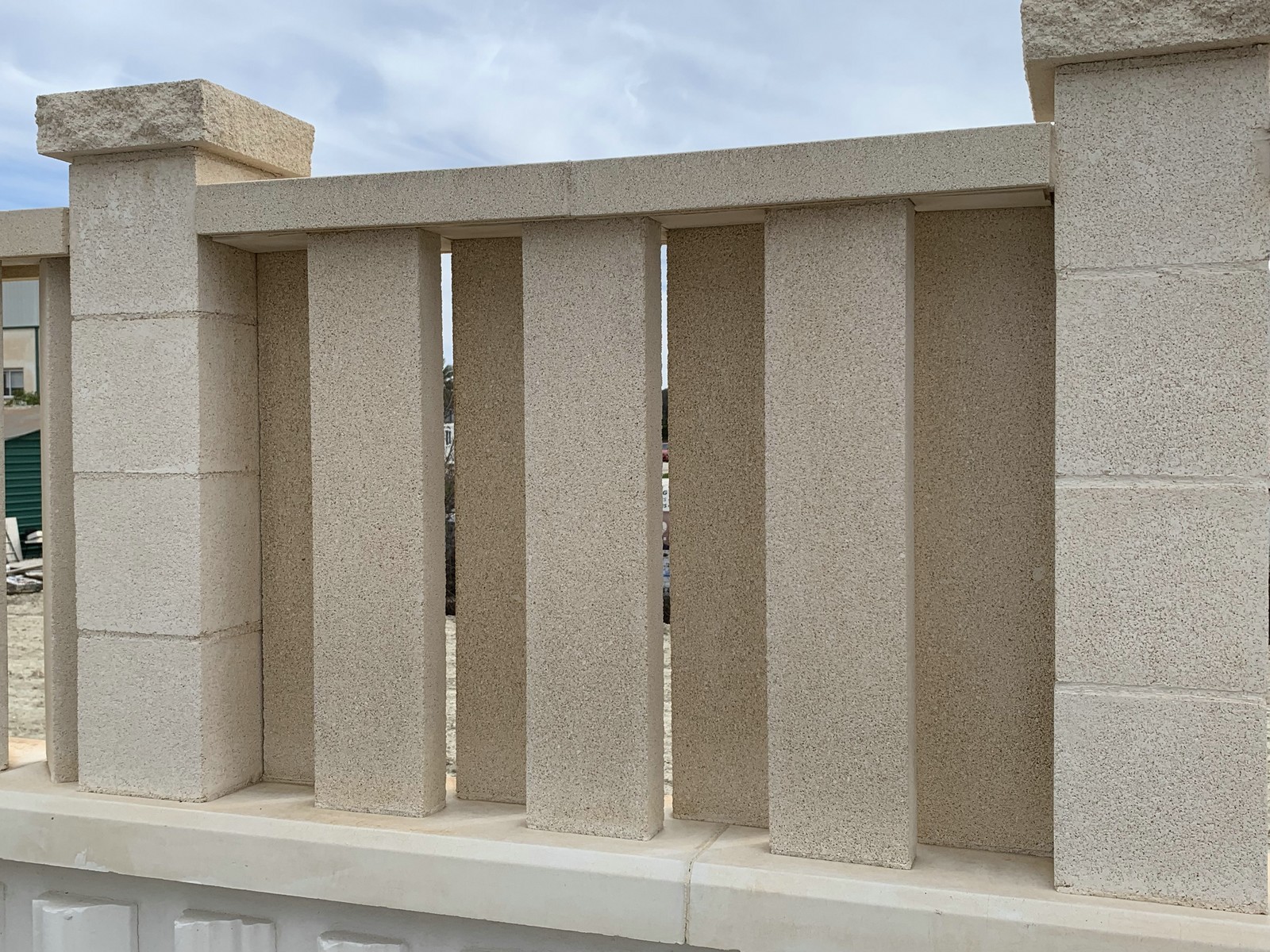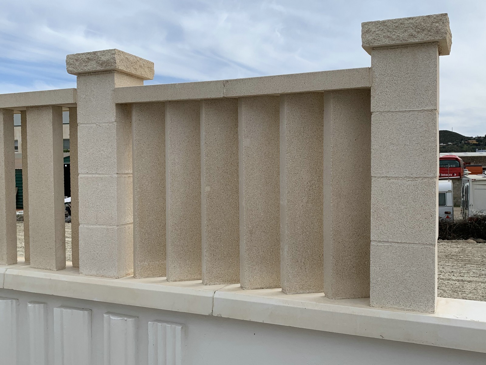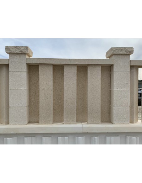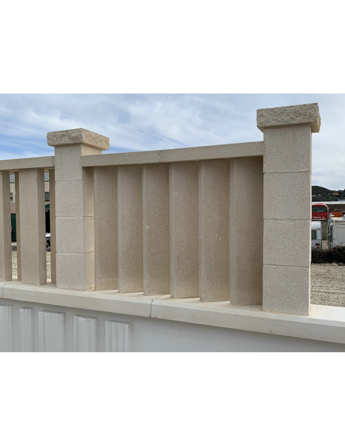 Paraviento fabricado en hormigón blanco, reforzado con varillas corrugadas de 8mm, incluye fibra de vidrio en el material y aditivos para el cemento.