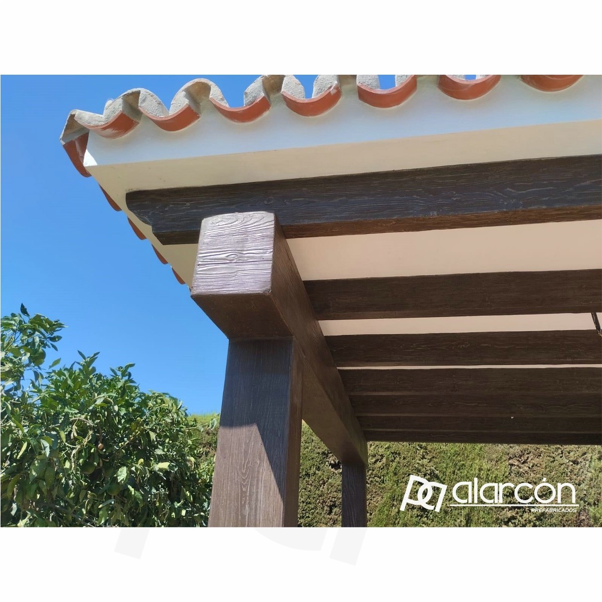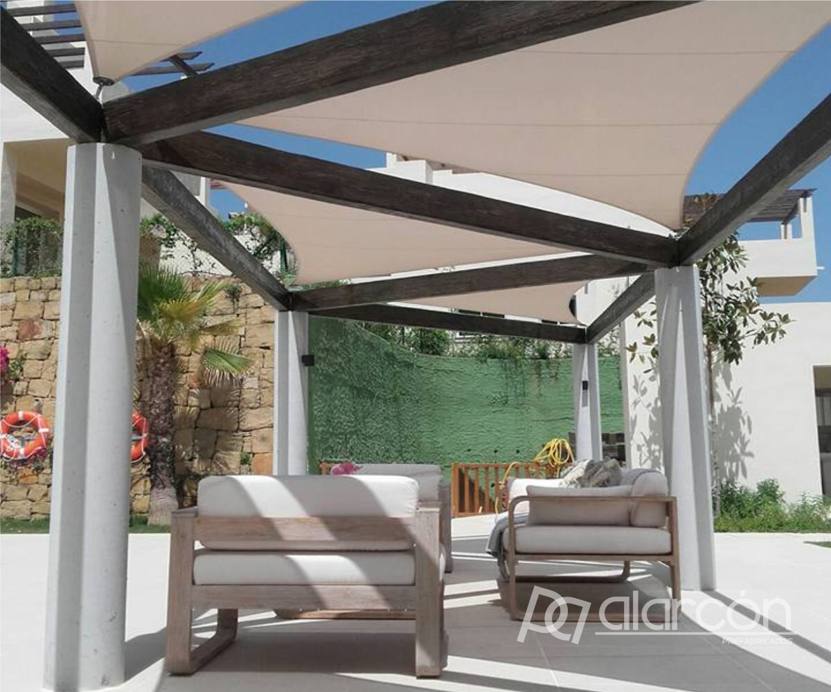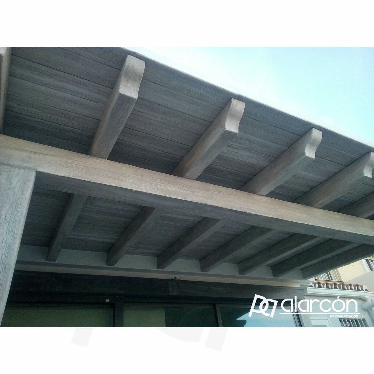 Viga tipo Pérgola de hormigón prefabricado imitación madera.